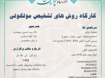 کارگاه روش های تخصصی تشخیص آزمایشگاه به روش PCR و Real time PCR در مرکز تحقیقات بیماریهای عفونی و گرمسیری به صورت کاملا عملی از 12 آبان تا 30 دی ماه برگزار گردید.